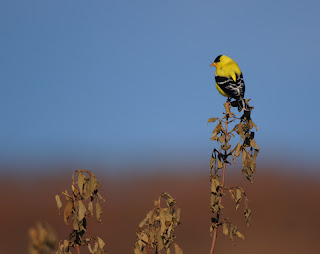 I really liked these shots I got because of the blended background colors.... both were taken in the morning hours. Goldfinch on top, Western Kingbird on bottom.